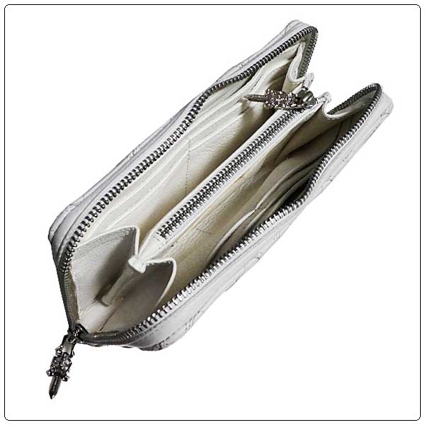 クロムハーツ 財布(Chrome Hearts)REC・F・ZIP#2・キルティングセメタリークロスホワイト・ライトレザー・ロジウム・プレーテッド(クロム・ハーツ)(長財布)