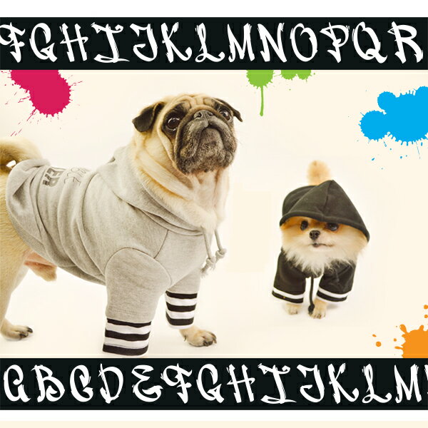 トラブルメーカー レイヤード パーカー/ S,M,L,XL【犬服 犬の服 ドッグウェア ベストフレンズ 犬 服】小型犬 袖 ボーダー フード ストリート プリント かっこいい コットン 綿100%