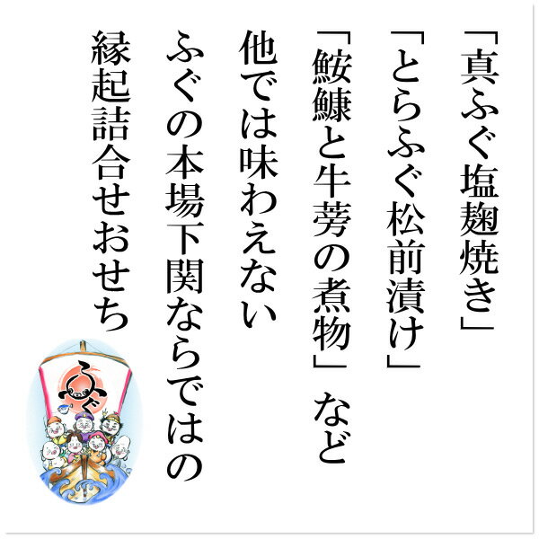・関とら こだわりのふぐや鮟鱇を中心に、 定番おせちも詰合せた特大8寸のおせち料理です。