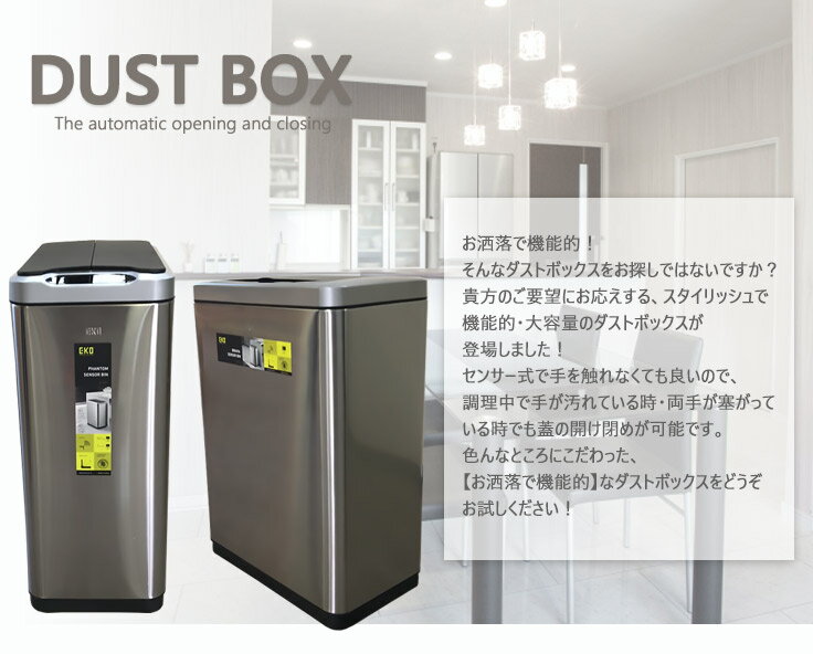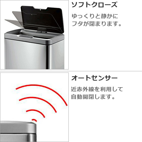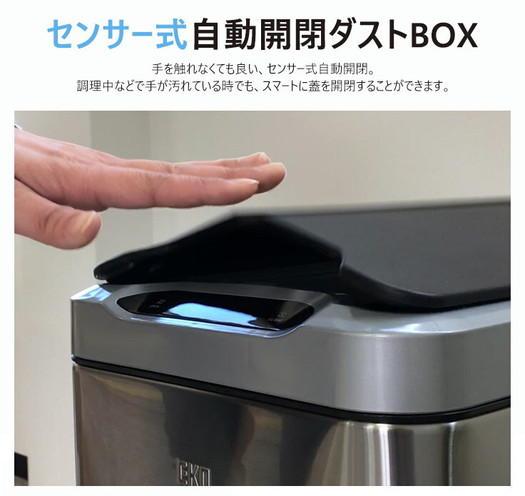 EKO ミラージュ センサービン 45L ゴミ箱 ごみ箱 自動開閉 45リットル ステンレス 横型 横開き スリム 大容量 ダストボックス キッチンゴミ箱 センサーゴミ箱 キッチンごみ箱 ふた付き おしゃれ センサー付きゴミ箱 45l キッチン 台所 オフィス 袋が見えない