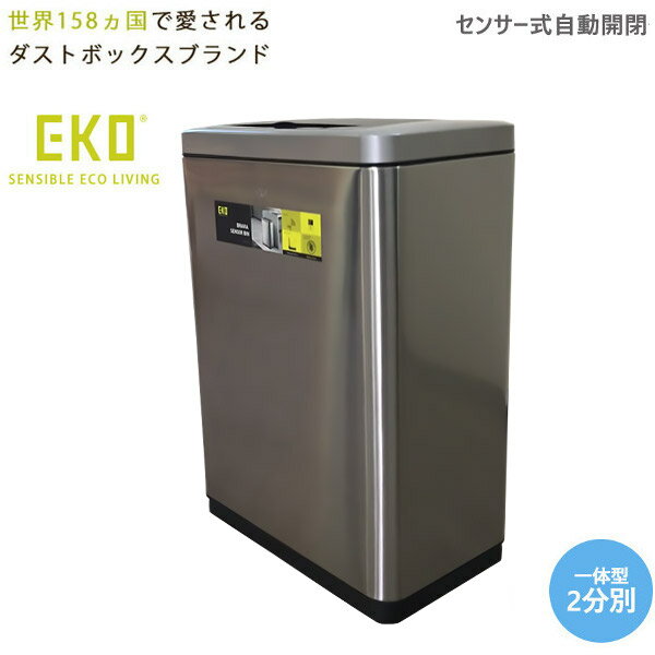 ゴミ箱 EKO ダストボックス おしゃれ 幅46cm 2分別 ペール付き ステンレス センサー式 自動開閉 シルバー