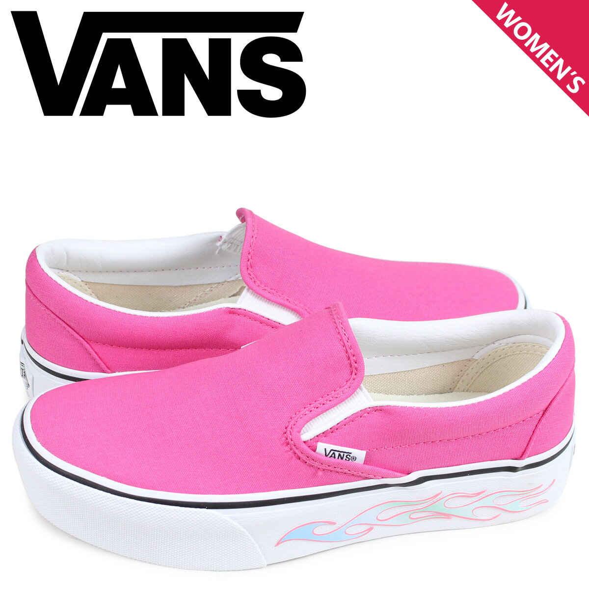 VANS ヴァンズ スリッポン クラシック スニーカー レディース バンズ CLASSIC SLIP-ON PLATFORM SIDEWALL FLAME ピンク VN0A3JEZVN6